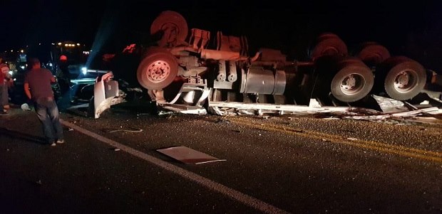 La persona fallecida es precisamente el chofer de este pesado vehículo, de los llamados “quinta rueda”, que estaba cargado de grava, material que quedó regado sobre la cinta asfáltica y que provocó el cierre parcial de la carretera.