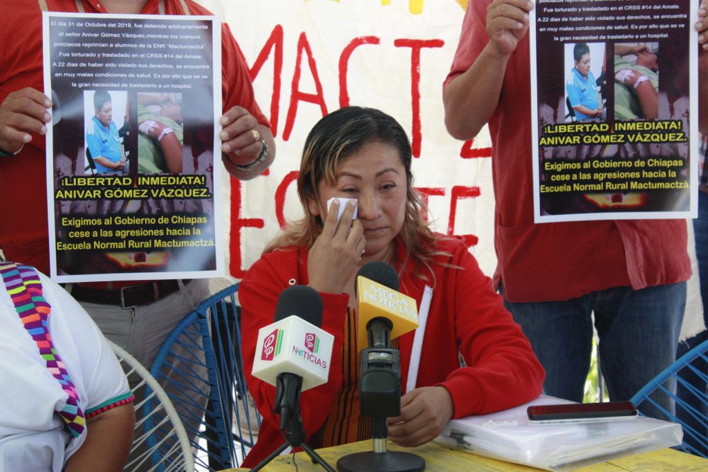 Tuxtla Gutiérrez (Ch24/7). Guadalupe Pérez de la Torre, esposa de Anivar Gómez Vázquez, el pequeño empresario que el 31 de octubre pasado fue detenido por la Secretaría de Seguridad y Protección Ciudadana (SSyPC), cuyos policías replegaban con gases lacrimógenos a los estudiantes de la Escuela Normal Rural “Mactumatzá” y días después encerrado en el penal de “El Amate”, exigió justicia y la pronta liberación de su pareja. “Mi esposo es ajeno al conflicto de la ‘Mactu’”, sostuvo.