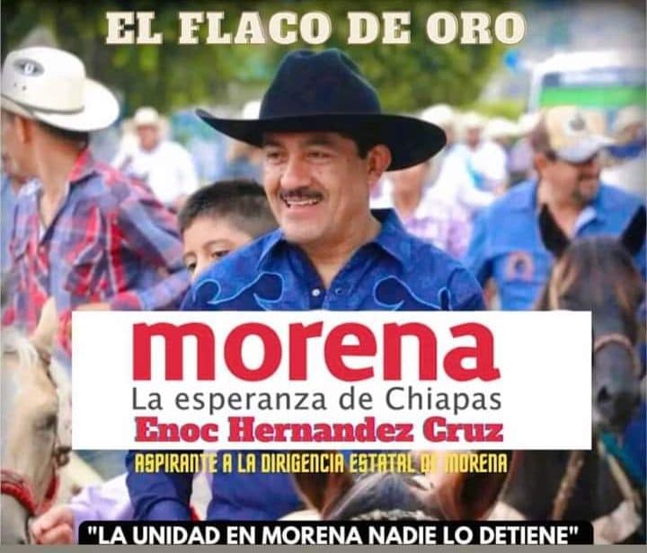 Desesperado porque la PATADA en el TRASERO que le darán los chiapanecos está a la vuelta de la esquina, Enoc Hernández Cruz manda a publicitar o anunciar lonas o bardas pintadas, según él, en varios municipios en las que se le apoya para ser el próximo dirigente de Morena en Chiapas.