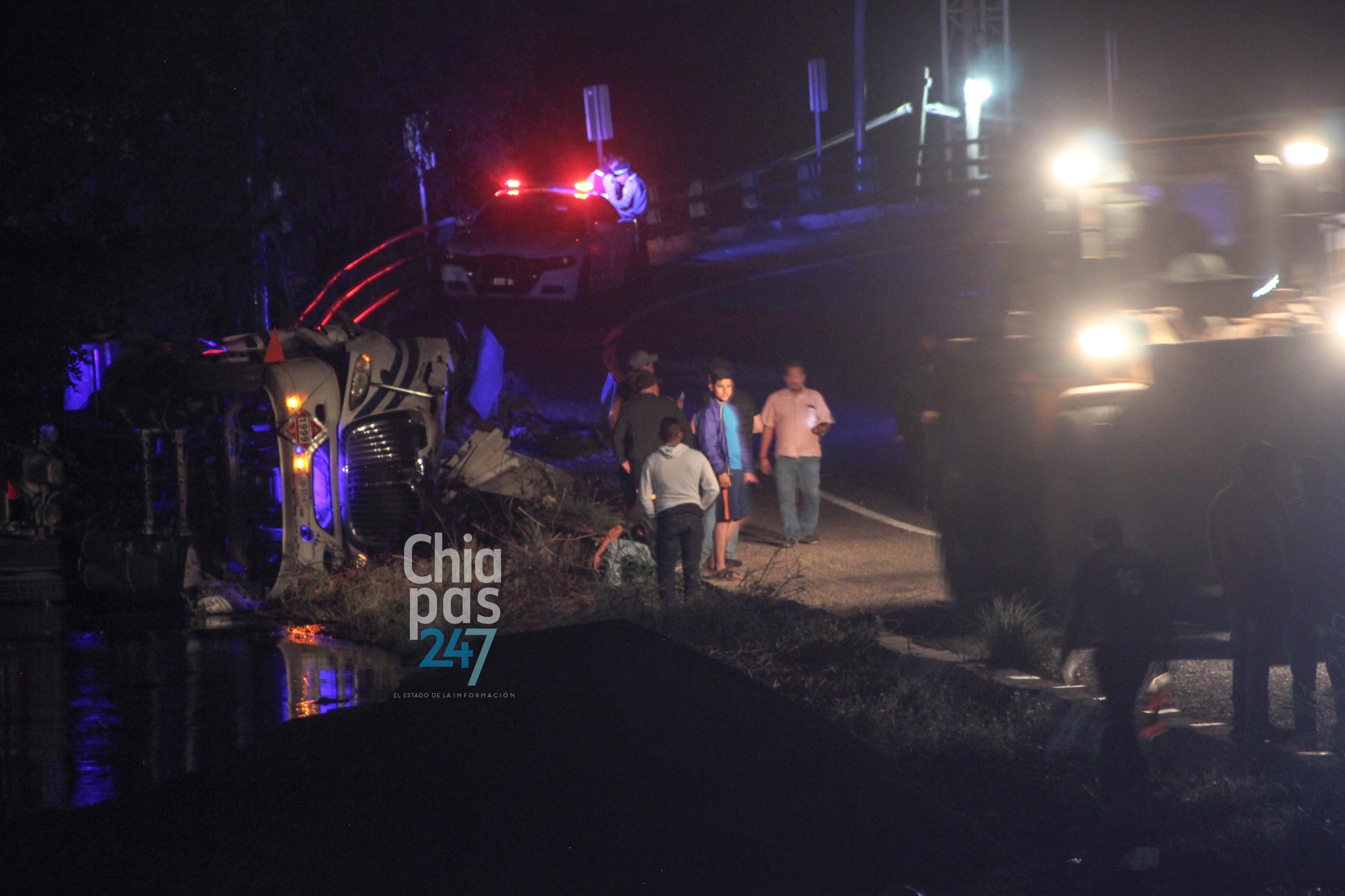 Testigos indicaron que la pipa descendía de un tramo vial para incorporarse a la carretera Tuxtla-La Angostura, cuando aparentemente presentó una falla en el sistema de frenado, lo que hizo que el conductor perdiera el control del volante y volcara a un costado de la vía.