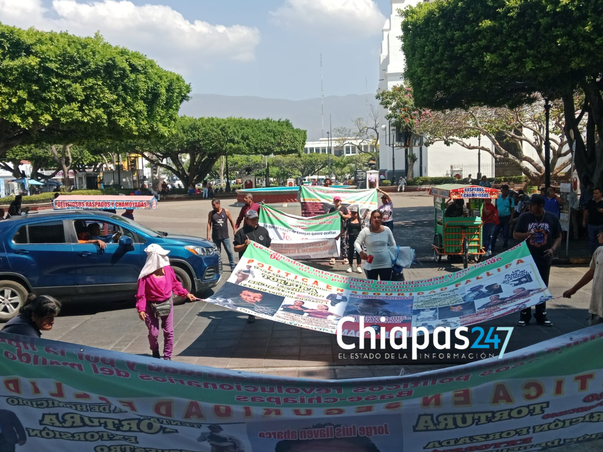 La protesta ocurre luego de que los manifestantes realizaron una marcha que partió del parque 5 de Mayo y avanzó sobre la Avenida Central hasta llegar al recinto legislativo, donde se apostaron con pancartas y consignas para exigir la intervención de las autoridades estatales.